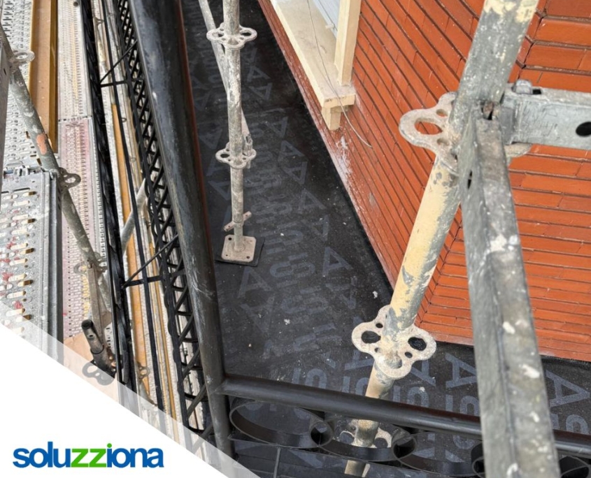 En la Gran Vía Ramón y Cajal nº 6 de Valencia, Soluzziona está llevando a cabo la reparación integral de las fachadas del edificio. Los trabajos incluyen la restauración de zonas enfoscadas con morteros de alta adherencia, la aplicación de pintura acrílica y la puesta a punto del ladrillo caravista mediante limpieza, rejuntado y tratamiento hidrófugo invisible. Además, se están renovando los suelos de los balcones, sustituyendo la impermeabilización y el pavimento para garantizar una mayor protección y durabilidad.