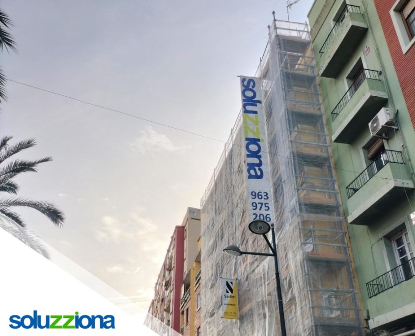 En la calle Santos Justo y Pastor, 24, de Valencia, Soluzziona ejecuta la rehabilitación de la fachada principal, actuando sobre frentes de forjado y dinteles, con reposición puntual de piezas y sustitución de bajante conforme a normativa. Los trabajos incluyen impermeabilización de voladizos, sellado de juntas y aplicación de revestimientos acrílicos. Una intervención completa que mejora la seguridad, estanqueidad y durabilidad del edificio.