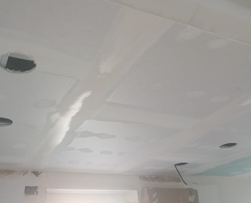 Finalizada la parte estructural, se repusieron los falsos techos con materiales de calidad y se realizaron trabajos de pintura, recuperando la estética original del interior de las viviendas y dejando todo en perfectas condiciones de uso.